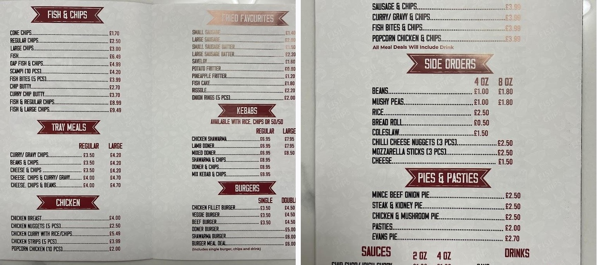 Visiting Khan’s Fish & Chips is a must for anyone craving authentic fish and chips or a quick kebab fix in Port Talbot. The affordability of the menu allows you to enjoy a delicious meal without breaking the bank, with most dishes priced between £1 and £10. The welcoming atmosphere and friendly staff make every visit an enjoyable experience, perfect for both solo diners and families.