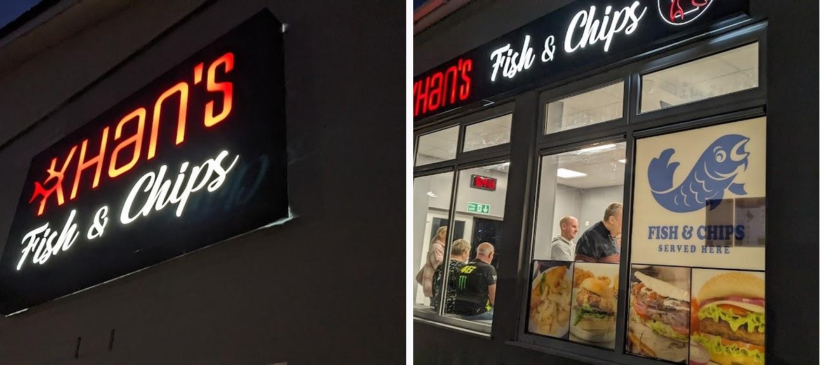 Khan's Fish & Chips is fantastic! The fish and chips are perfectly cooked and full of flavour. The place is clean and well-kept, and the staff are incredibly friendly and welcoming. Highly recommended!